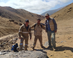 3. Equipo de trabajo: de izquierda a derecha, Jonathan Larico, conductor de Explotrack; Angello Serrano, asistente de campo; Iván Ramirez, geólogo del proyecto.