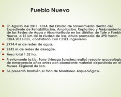 1. Pueblo Nuevo2. Obra de alcantarillado con rescate arqueológico3. Rescate arqueológico de entierros en Pueblo Nuevo4. Entierro con ofrendas en Pueblo Nuevo5. Restos de maíz6. Vasija funeraria en Pueblo Nuevo7. Vasija en el área del cementerio de Pueblo Nuevo9. Ofrenda funeraria8. Peine - ofrenda funeraria Atrás
