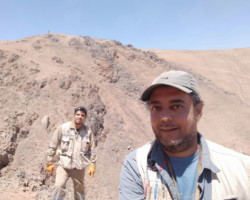 3. Equipo de trabajo: de izquierda a derecha, Jonathan Larico, conductor de Explotrack; Angello Serrano, asistente de campo; Iván Ramirez, geólogo del proyecto.