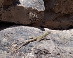 5. Estructura cizallada con epidota y magnetita en el granitoide. Evento distal a cuerpos de magnetita con óxidos de cobre.